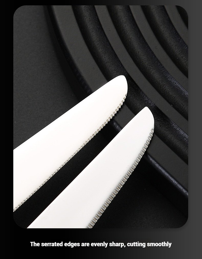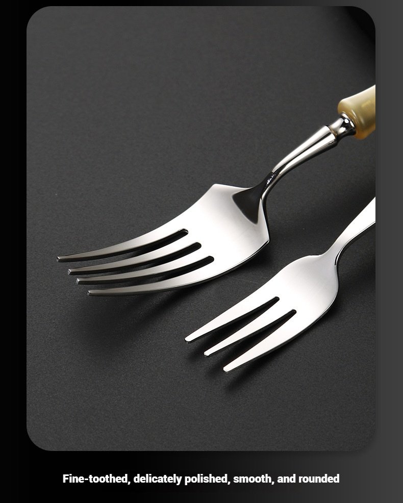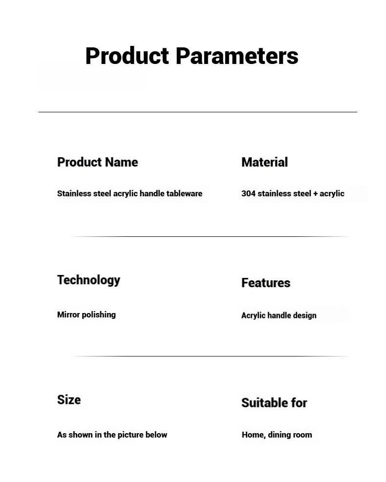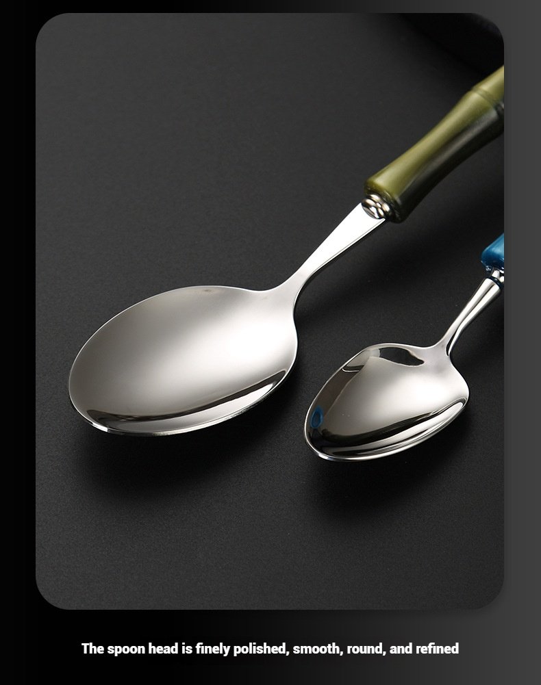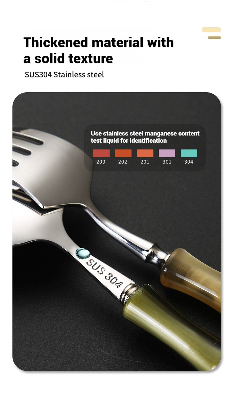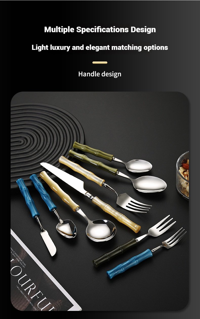 SLCJ-0003 304 stainless steel creative Western dining set with anti-slip acrylic handles. There are 7 different styles of knives, spoons and forks, and 3 colors are available for selection