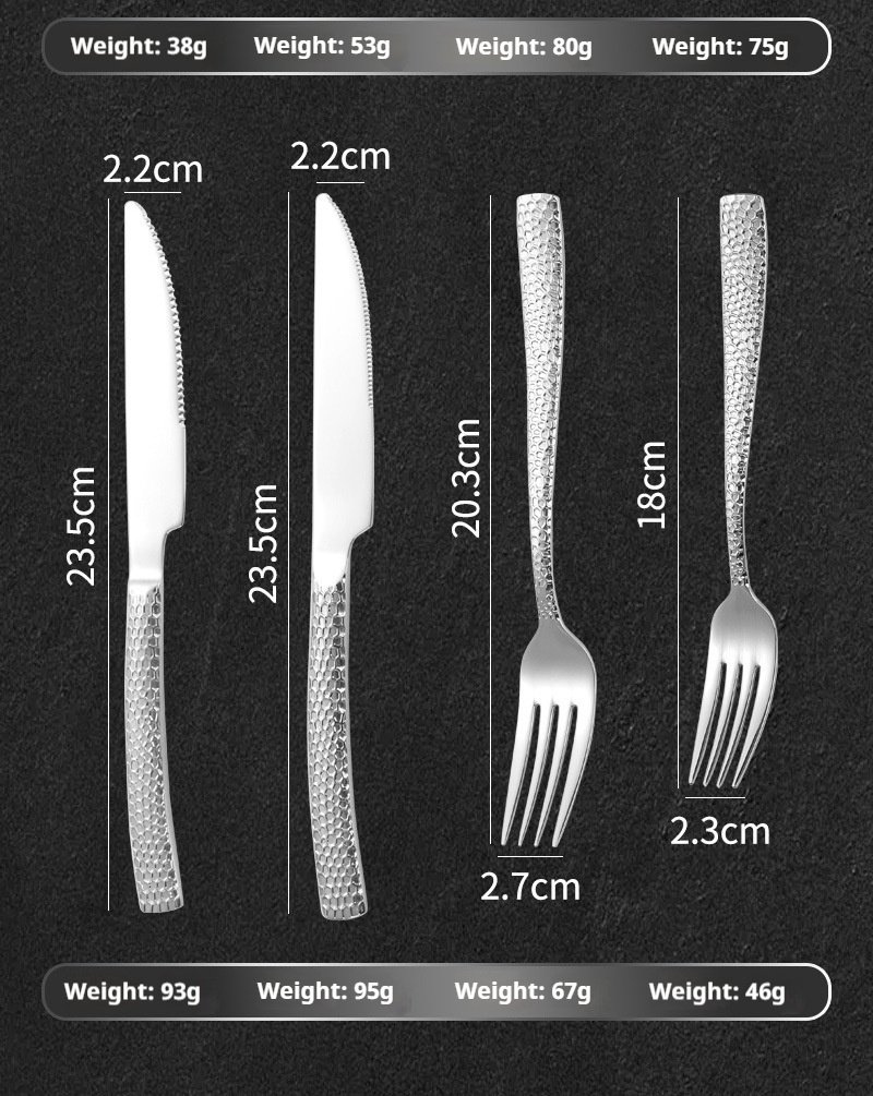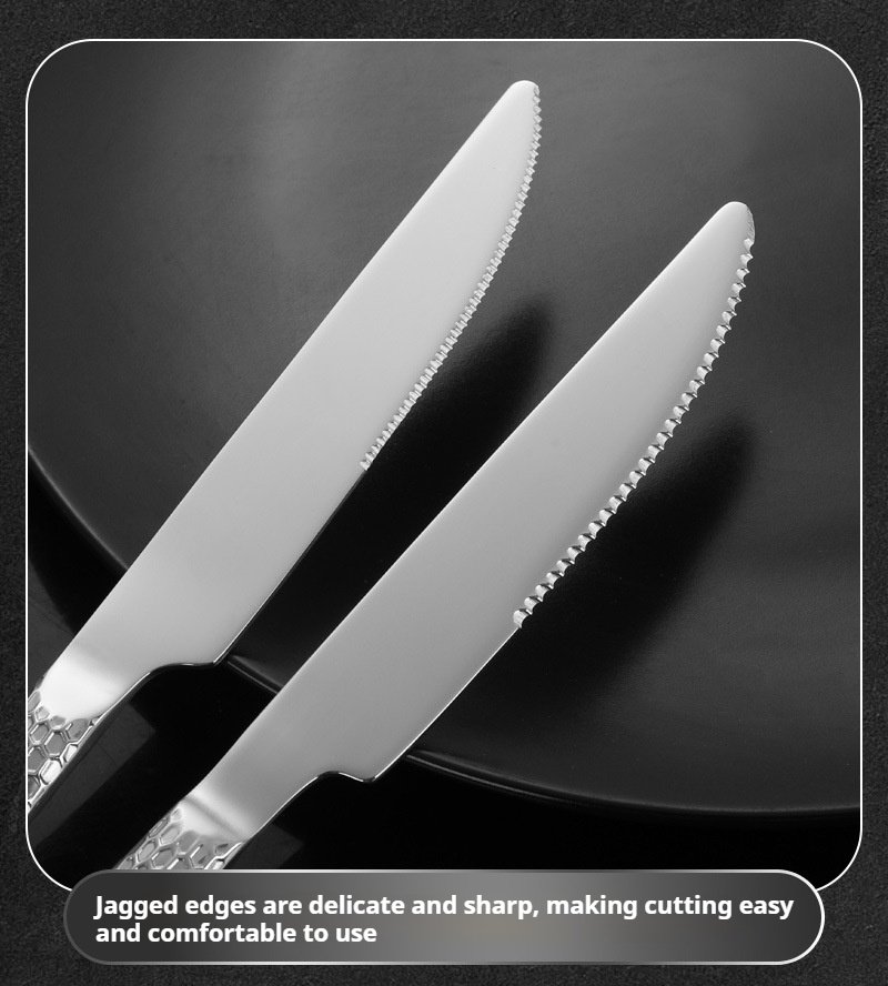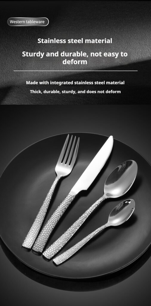 Home Uncategorized 🔍 CJ-0020 304 stainless steel hammered pattern European-style tableware knife, fork and spoon, thickened water cube steak knife, dessert spoon, ladle and spoon welcome to leave your information, and we will contact you as soon as possible. Description Please enable JavaScript in your browser to complete this form.Please enable JavaScript in your browser to complete this form.Name *Phone *Email Address *Your Message *Send Message Related products CJ-0016 Custom logo Easy Clean and Carry Mirror Polish Reusable Stainless Steel Metal Spork MetalenUncategorized CJ-0004 304 Stainless Steel Children’s Knife Fork and Spoon Baby Cartoon Cutlery 4 PCS Set Western Food TablewareUncategorized SLCJ-0002 Cute Western-style tableware set – Cheese style – Home use – Portable – Stainless steel – Steak knife and fork – Dessert spoon – Chopsticks – Customizable 3-piece setUncategorized CJ-0008 Cutlery Set // stainless Steel Cutlery Hotel Wedding Flatware Set // bulk Luxury Gold Stainless Steel Cutlery SetUncategorized