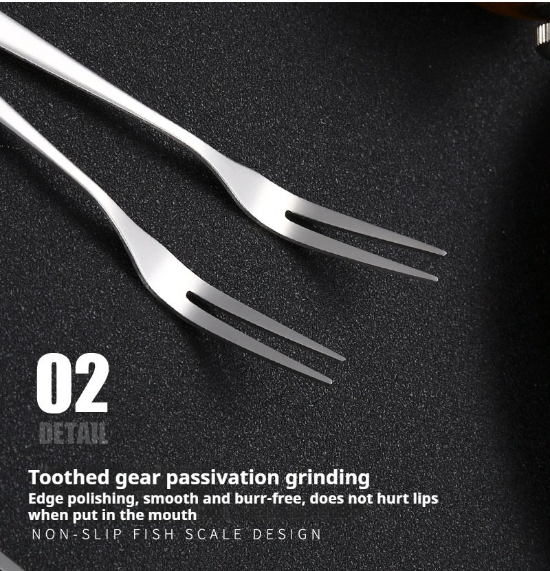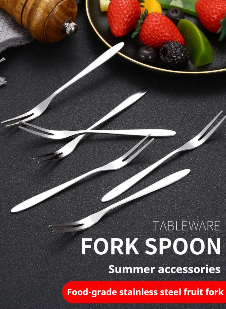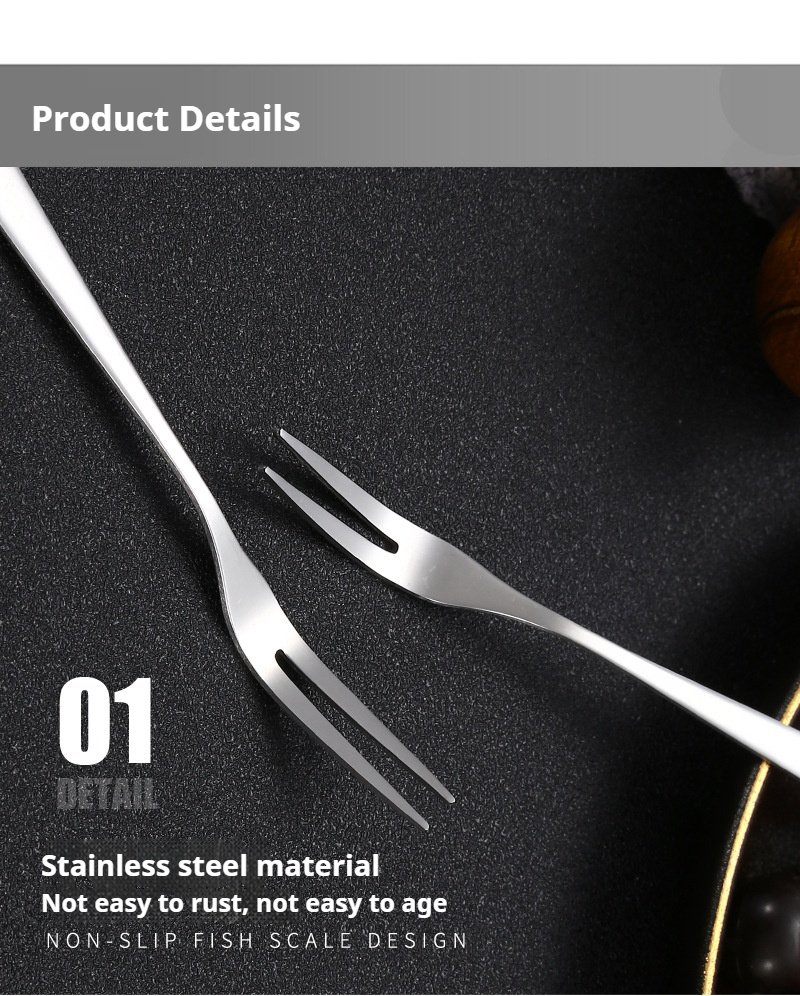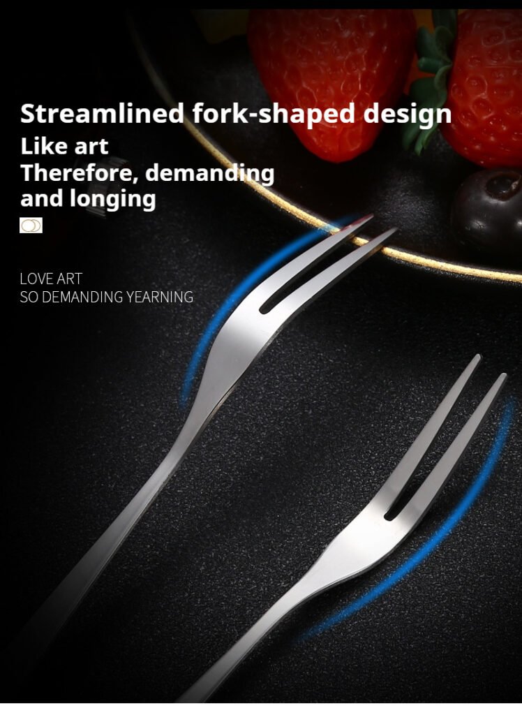 CJ-0021 304 stainless steel thickened fruit fork, dessert fork, cake fork, double-toothed and triple-toothed western dining fork. The color and material can be customized
