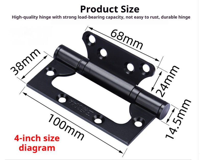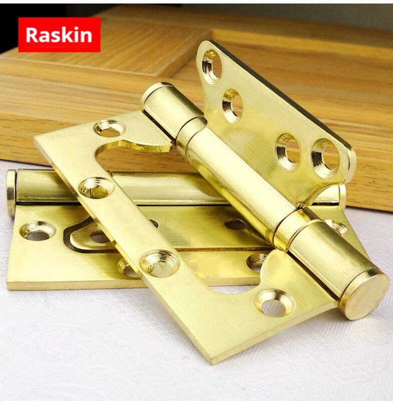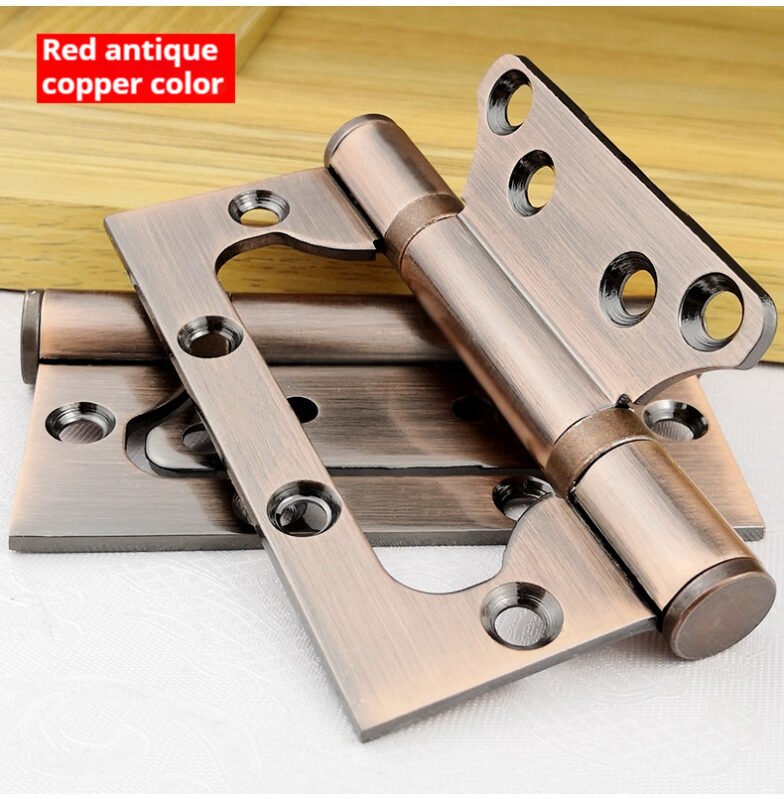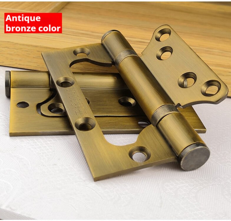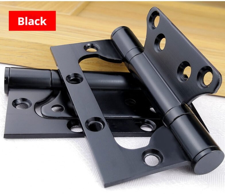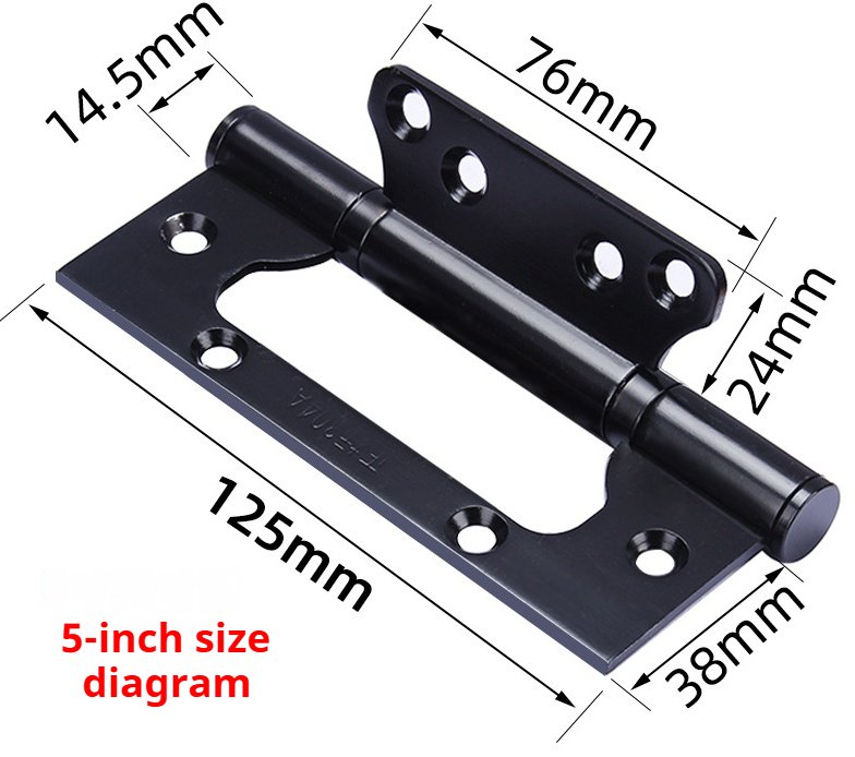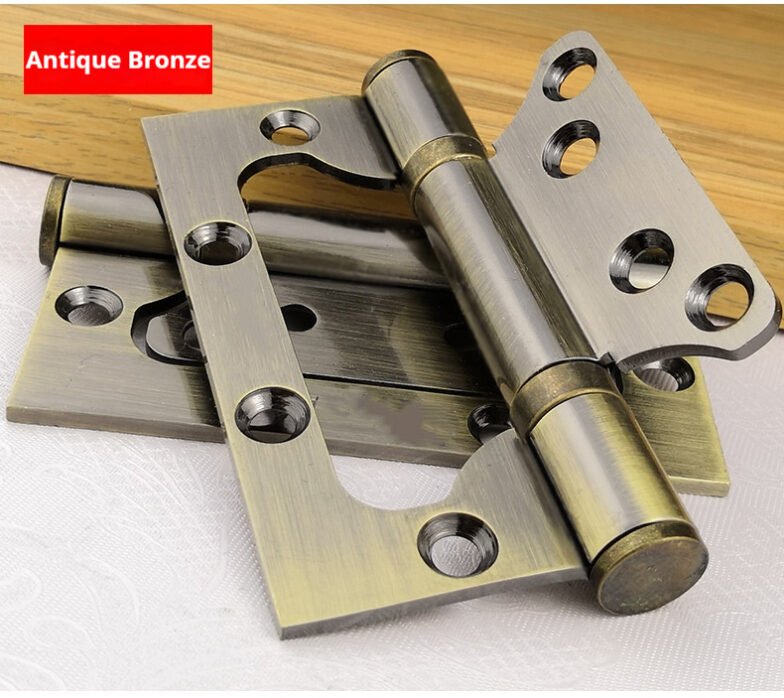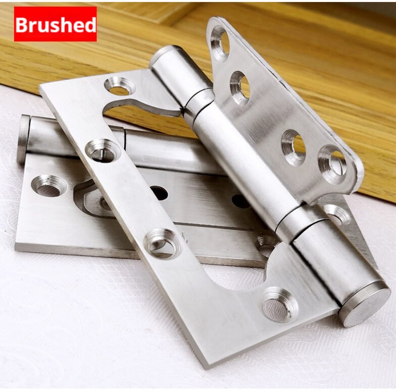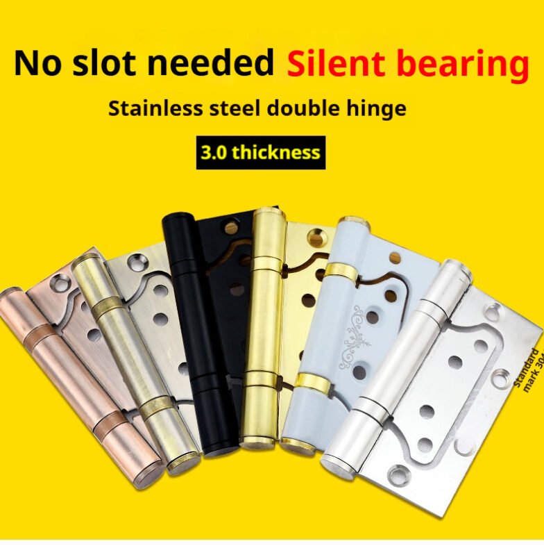 3mm thick 304 stainless steel interlocking hinges. Installation does not require slotting. Home door silent hinge with bearing. Available in 4″ and 5″ sizes. Multiple colors are available. Custom sizes can be provided