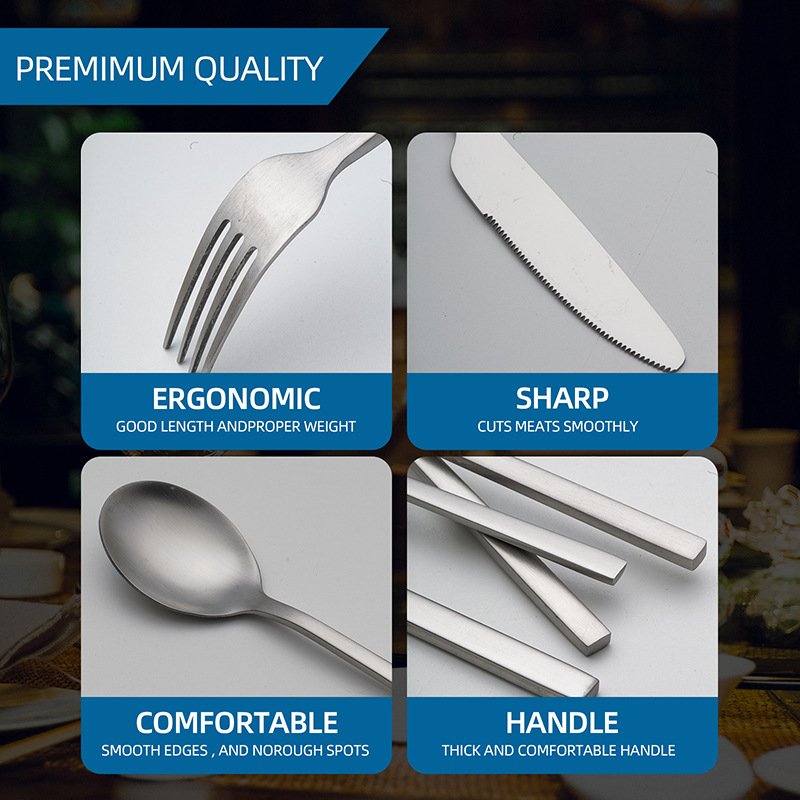 Home Uncategorized 🔍 CJ-0012 Matte black handle stainless steel knife, fork and spoon set of 5 pieces. Flat one-piece formed tableware set. welcome to leave your information, and we will contact you as soon as possible. Description Please enable JavaScript in your browser to complete this form.Please enable JavaScript in your browser to complete this form.Name *Phone *Email Address *Your Message *Send Message Related products CJ-0006 Stainless steel tableware set for 4 to 8 people – knife, fork, spoon, steak knife set – 24 to 48 pieces set in a colorful boxUncategorized CJ-0011 Stainless steel Portuguese-style tableware set – knife, fork, teaspoon, ladle set of four. Available in multiple color optionsUncategorized CJ-0010 Stainless steel creative set of cutlery (forks, knives, spoons) with rope texture handle It is made using a retro distressed technique Suitable for hotels and restaurants. Customizable set gift box is availableUncategorized CJ-0015 Bulk Gold Titanium Dinner Knife Spoon Fork Cutlery Set Luxury High Quality Stainless SteelUncategorized