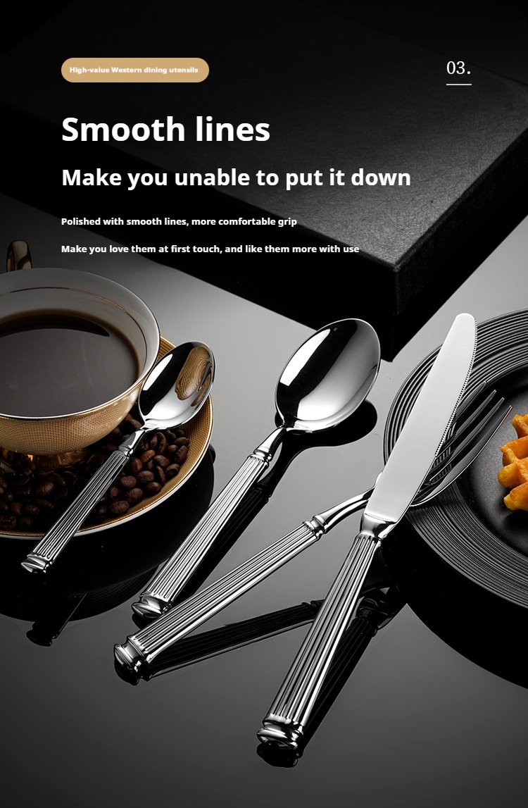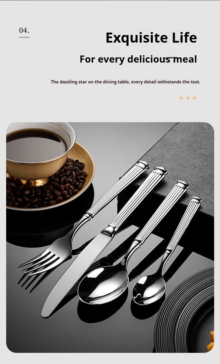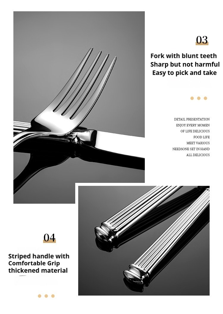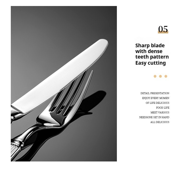 Home Uncategorized 🔍 CJ-0024 Roman Column Series Thickened Hammered Stainless Steel Knife, Fork, Spoon, Tea Spoon Western Dining Set for Steak House and Restaurant Dessert Fork welcome to leave your information, and we will contact you as soon as possible. Description Please enable JavaScript in your browser to complete this form.Please enable JavaScript in your browser to complete this form.Name *Phone *Email Address *Your Message *Send Message Related products CJ-0019 Stainless steel 304 household soup spoon – Thick and cute tableware meteorite series – Creative high appearance level soup spoonUncategorized MZCJ-0001 Wood-handled stainless steel dinnerware set (forks, knives, spoons) in vintage style – 4-piece set suitable for home use and hotelsUncategorized CJ-0005 304 stainless steel knife, fork and spoon hotel family tableware – cutlery, coffee spoon, steak knife and fork, moonlight series Western tablewareUncategorized SLCJ-0001 Portable tableware set – Cute cartoon carrot – Stainless steel knife, fork, ladle, scraping spoon, colander. Choose any three sets and pack them in a carrot-shaped storage boxUncategorized